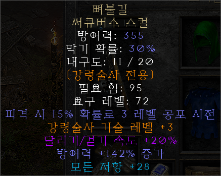 저주 스킬도 올려주지만, 시전 속도와 냉기 저항 모두 챙길 수 있어 좋습니다.