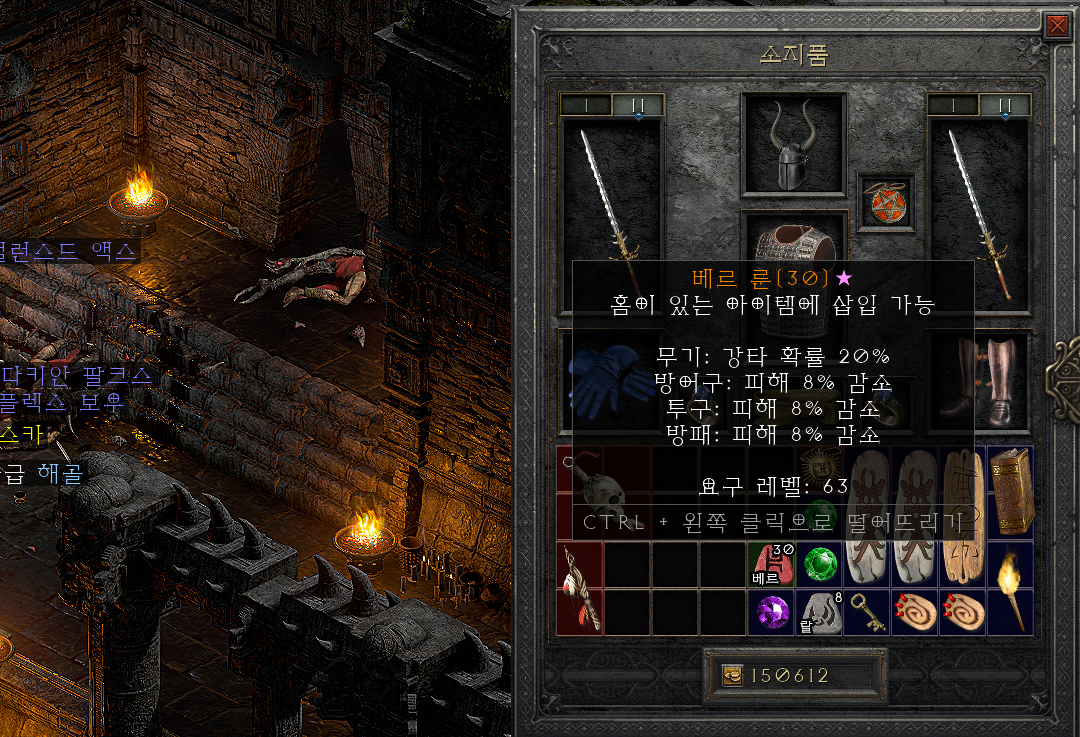 따끈따끈한 베르 룬 왔습니다. 매직 아이템 중에서도 비싼 아이템이 많이 있기 때문에 매직 아이템도 꼼꼼히 줍고 있는 중입니다. 아직 로 룬이나 자 룬, 조드 룬 등 먹어보지 못한 룬들도 여전히 많이 있네요.