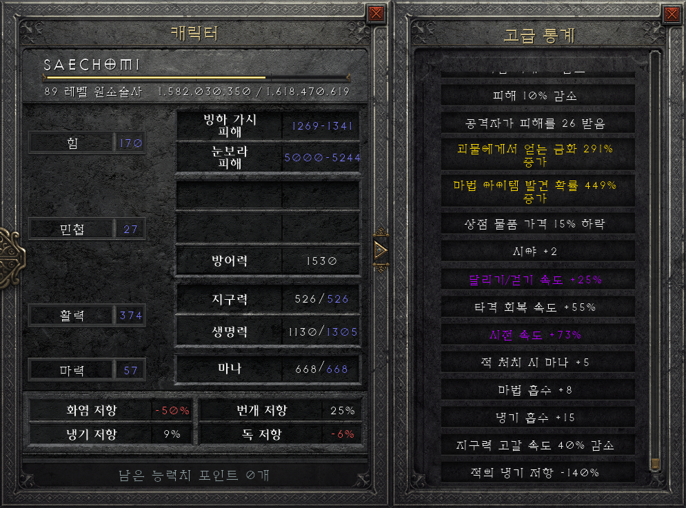 레벨 89, 매찬 449% 앵벌 소서 디아런에 관한 내용입니다. 일단 기본적으로, 극블리 소서로서 냉기면역에 굉장히 취약합니다. 스킬 중에 냉기 숙련으로 적의 냉기 저항을 깎을 수 있지만, 아직 스킬이 부족해서 그런지 1원소로 냉기면역을 잡을 수 없었습니다.