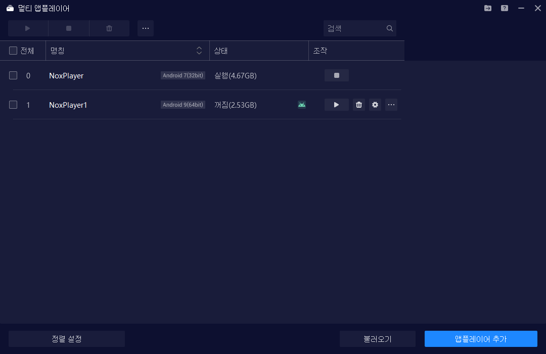 우측 아이콘 중에서 멀티 앱플레이어 아이콘을 찾아 클릭하면 새로운 앱을 만들 수 있습니다. 안드로이드 9버전으로 새롭게 설치해주세요.