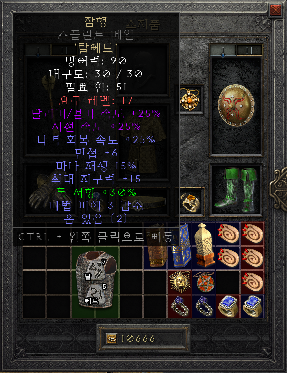 - +25% 달려 옵션이 있기 때문에 반드시 착용해줘야 하는 룬워드 아이템이라 생각됩니다.