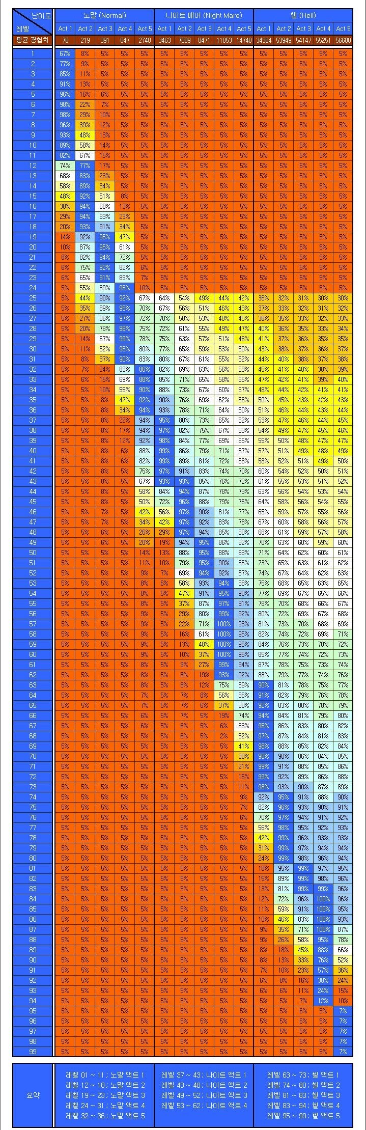 다만, 퀘스트를 빠르게 진행하는 것 보단 악몽 난이도 액트 2의 탈라샤 무덤에서 레벨업 하는 것을 추천드립니다. 파볼 소서가 가장 빠르고 무난하게 레벨업을 할 수 있는 지역입니다. 또한, 각 레벨마다 지역에 맞는 레벨업 사냥터가 다르기 때문에 아래의 내용을 참고해서 효율적인 레벨업을 합시다.